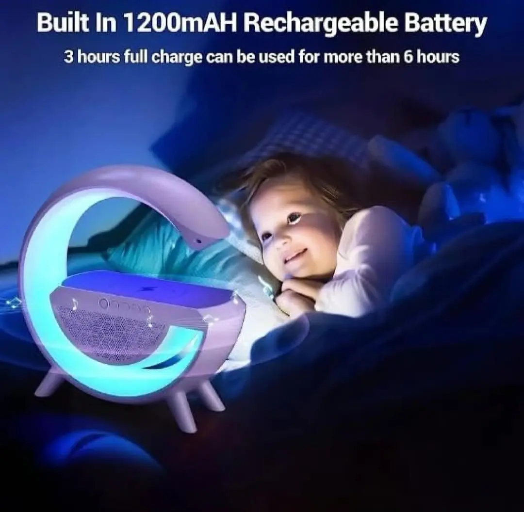 Lámpara LED pensada para sumar iluminación y entretenimiento en un solo producto. Cuenta con luz LED RGB que permite elegir distintos colores para crear ambiente, e incorpora parlante para reproducir música desde dispositivos compatibles. Su diseño moderno la hace ideal para escritorio, mesa de luz o espacios juveniles, combinando funcionalidad y estilo en el uso diario.